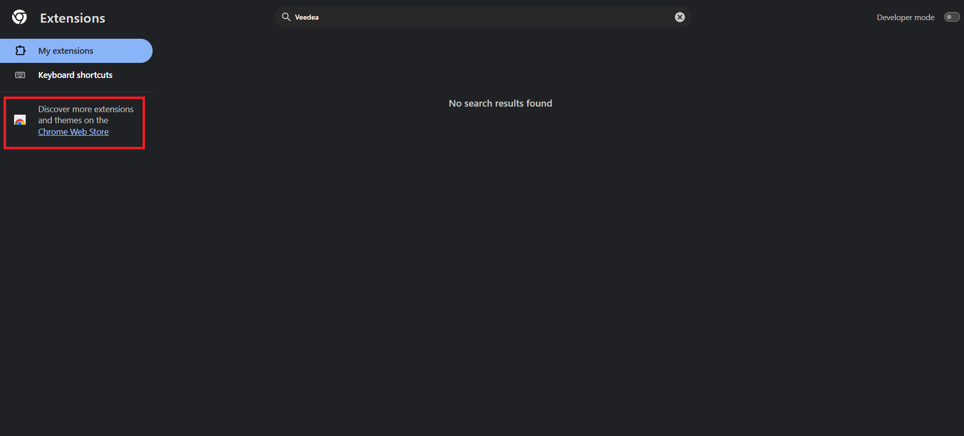 Then, click on the "Discover more extensions and themes on the Chrome Web store" option.