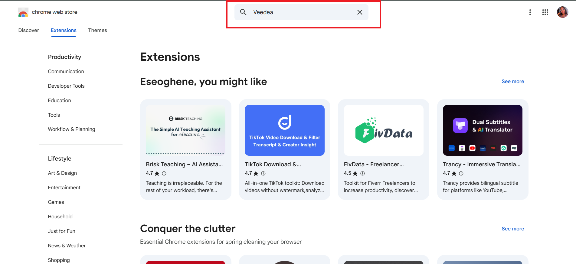 Using the search bar, search Veedea